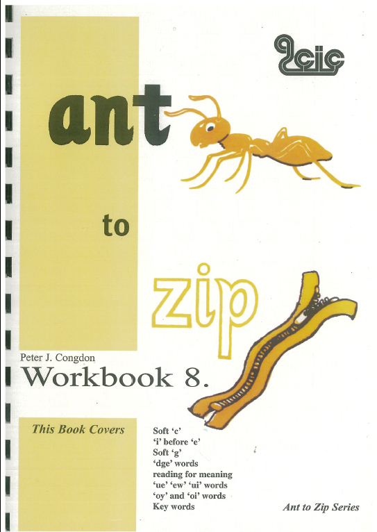 The Ant to Zip workbooks involve a structured synthetic phonic approach using multi-sensory methods. At no point is the pupil required to read or write any spelling pattern or language structure which has not been specifically taught. Failure is, therefore largely eliminated and rote memory is kept to a minimum. The activities and exercises throughout the programme are varied and involve relevant colourful illustrations which help to reinforce learning, and at the same time enlist a high level of interest and motivation.